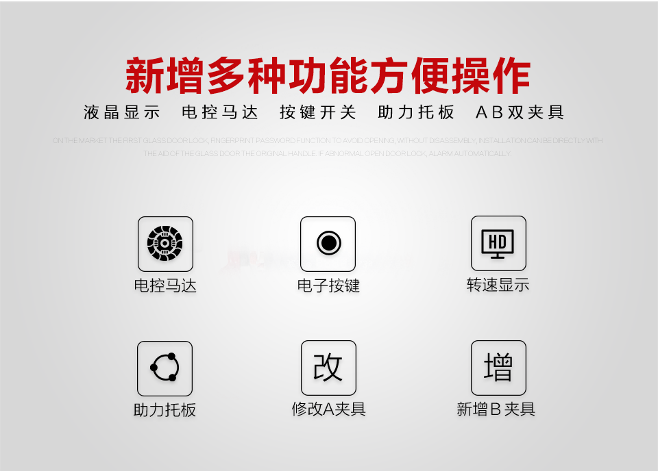 按钮式校平提示开关,转速液晶屏数显,精准式转速按钮调节,10-10000转/min可调范围